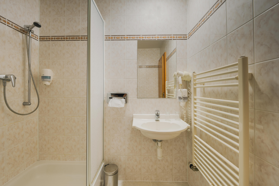 - Kúpeľňa so sprchovacím kútom a WC