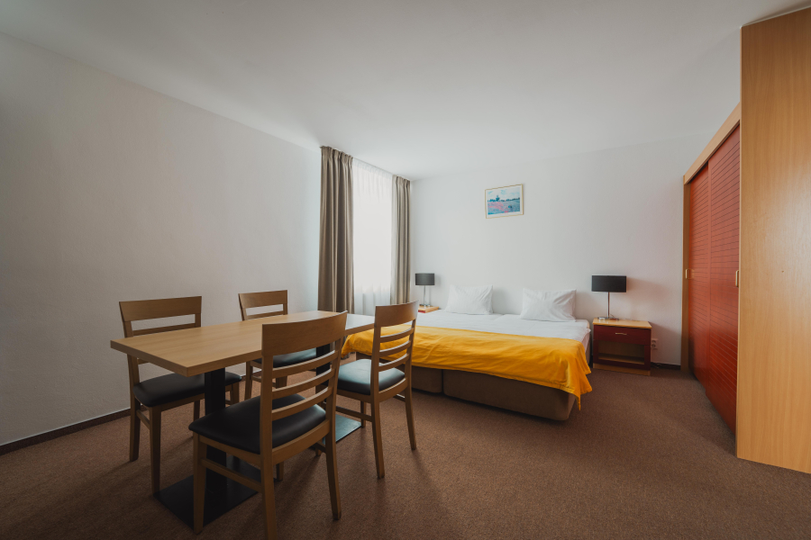 - 1. izba: manželská posteľ (možnosť oddelenia postelí) + 1 prístelka